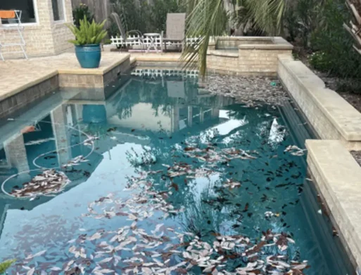 Austin’s pollen clouds your pool and clogs filters. Our regular skimming and maintenance keep your water clear.